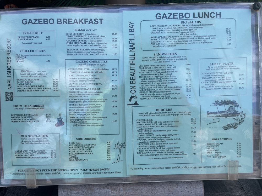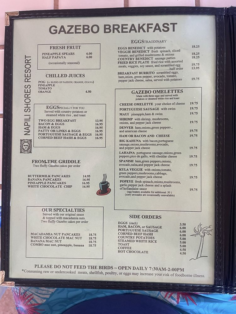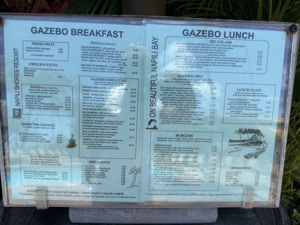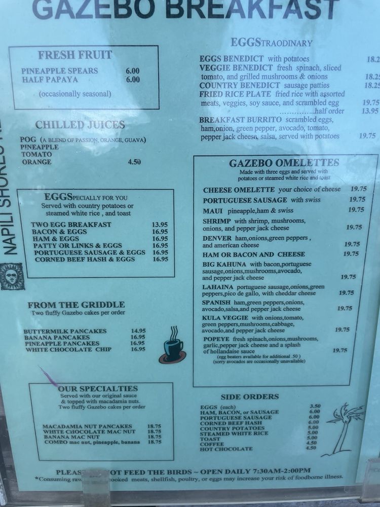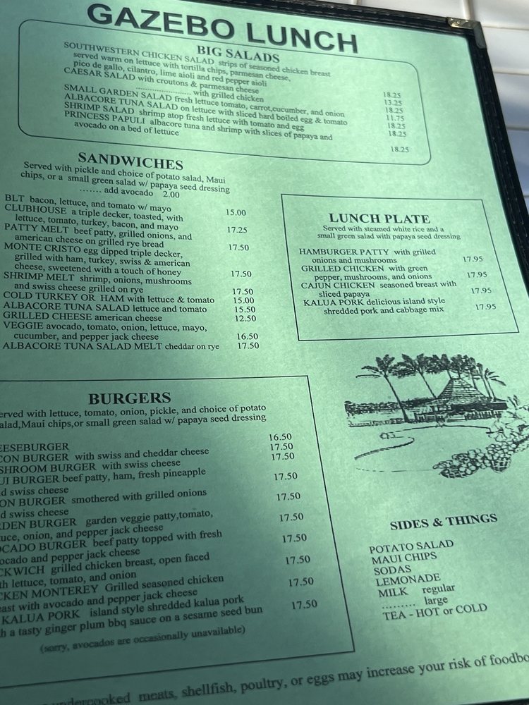 Introducing The Gazebo Restaurant, a hidden gem tucked away in Lahaina, HI. With a focus on providing delicious meals with a view, this restaurant offers a range of options including vegan dishes, breakfast favorites like Macadamia nut pancakes, and unique offerings like fried rice. The atmosphere is classic Hawaii, with ocean views from almost every table. Customers rave about the friendly staff and quick service despite the occasional wait for a table. Make sure to try the White Chocolate, Banana Macadamia Nut pancakes and the Corned Beef Hash and eggs for a delightful culinary experience. Whether you're looking for a casual breakfast spot or a place to relax with good food, The Gazebo Restaurant is a must-visit on Maui.